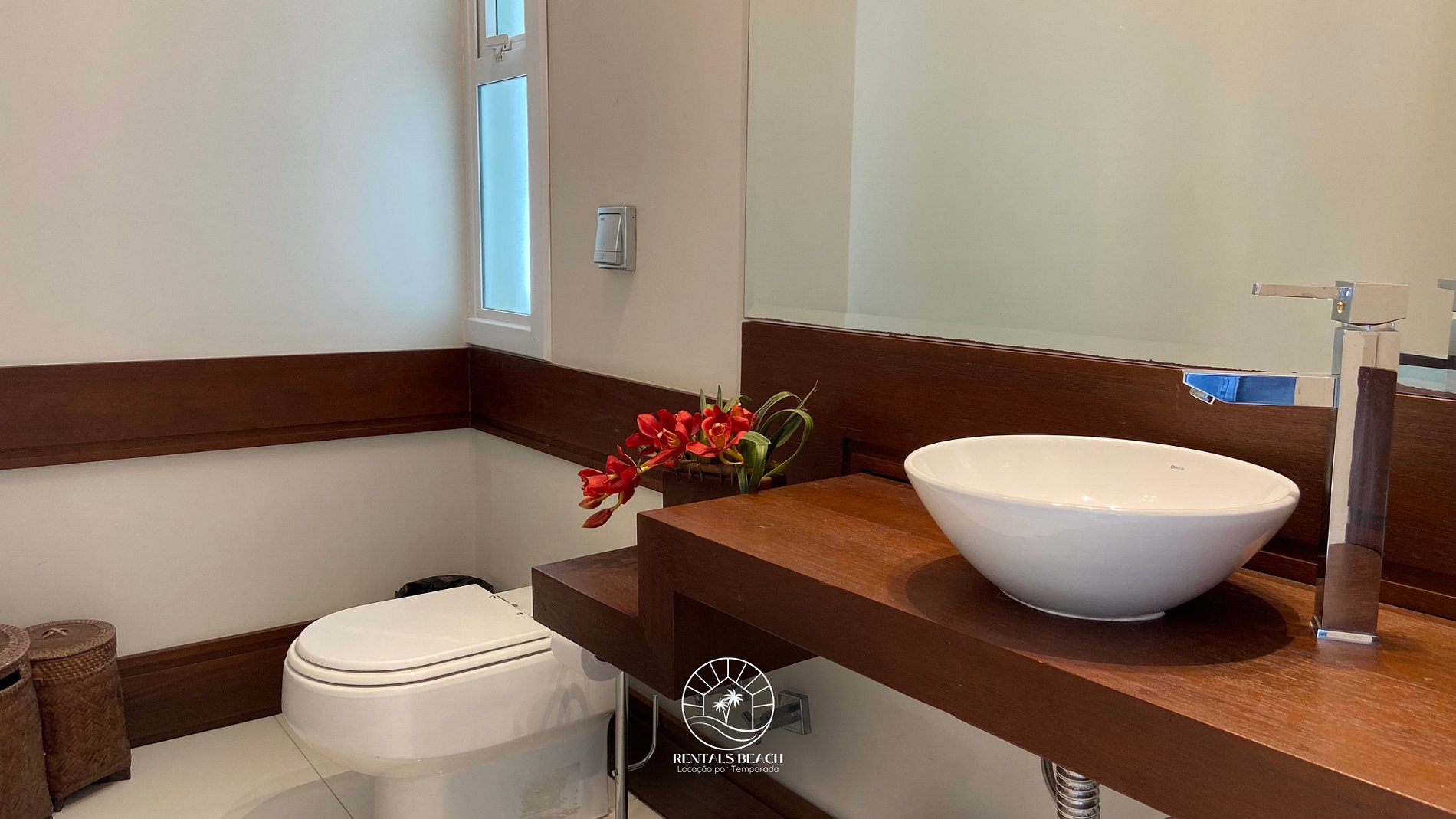 Banheiros: 02 banheiros sociais completo (na area de serviço e próximo a piscina) e 01 lavabo.