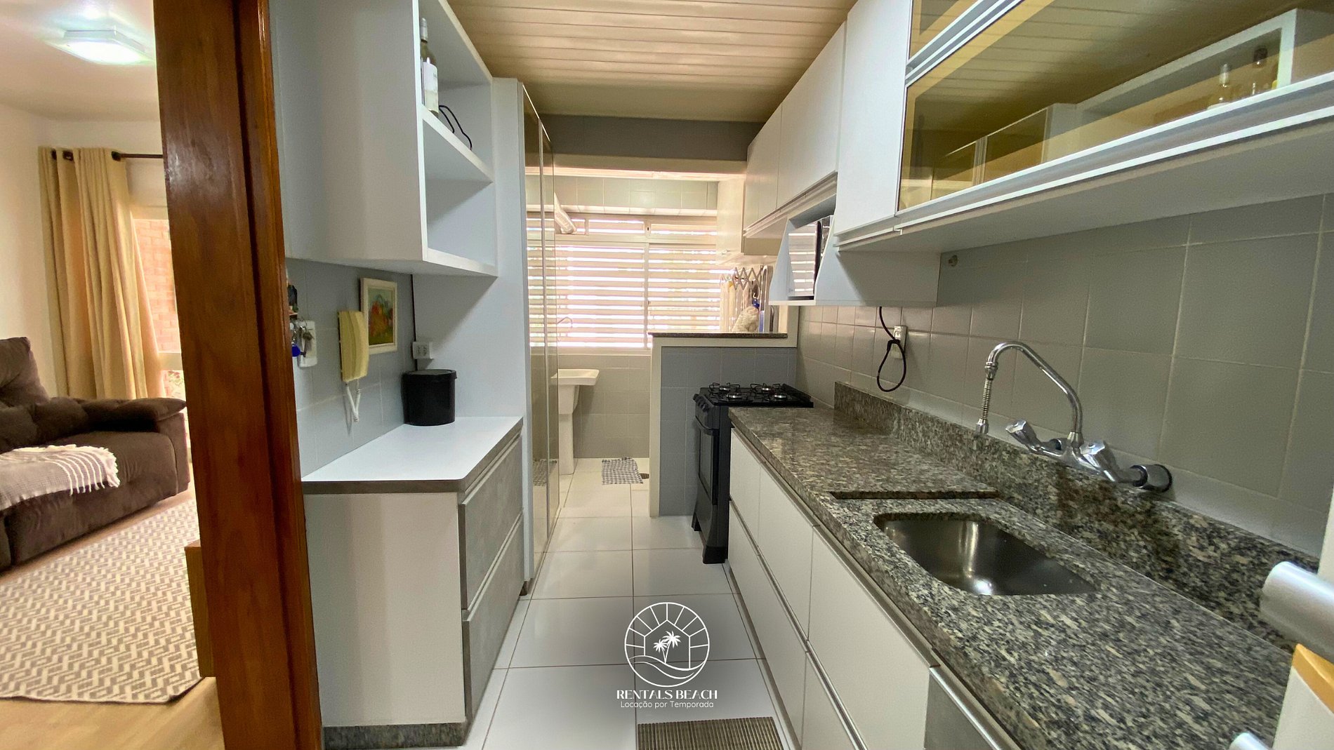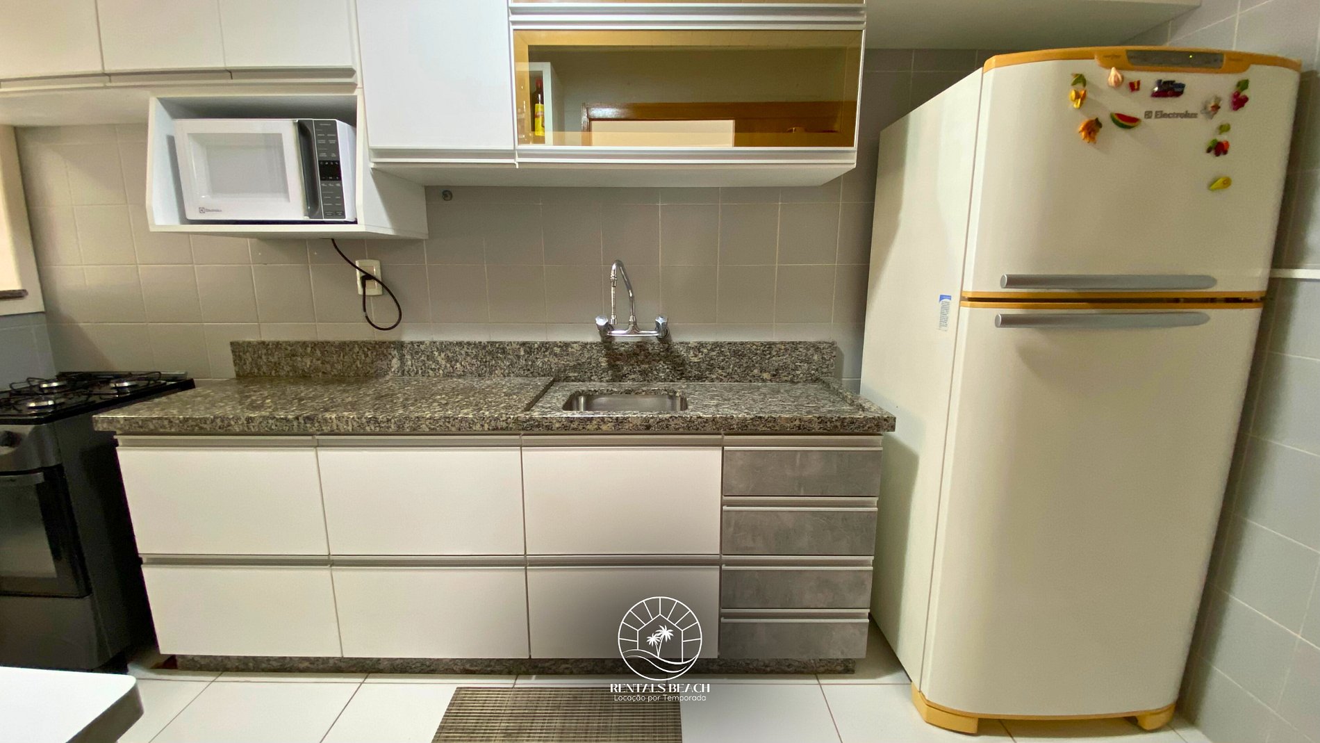 Cozinha: Fogão 04 bocas, forno, geladeira, chaleira elétrica, pratos, copos, utensílios diversos e churrasqueira (uso comum térreo).