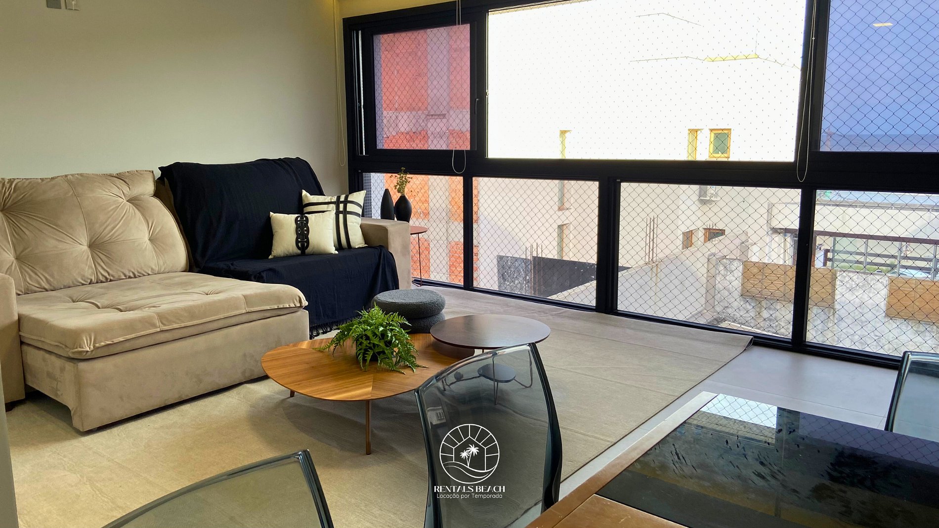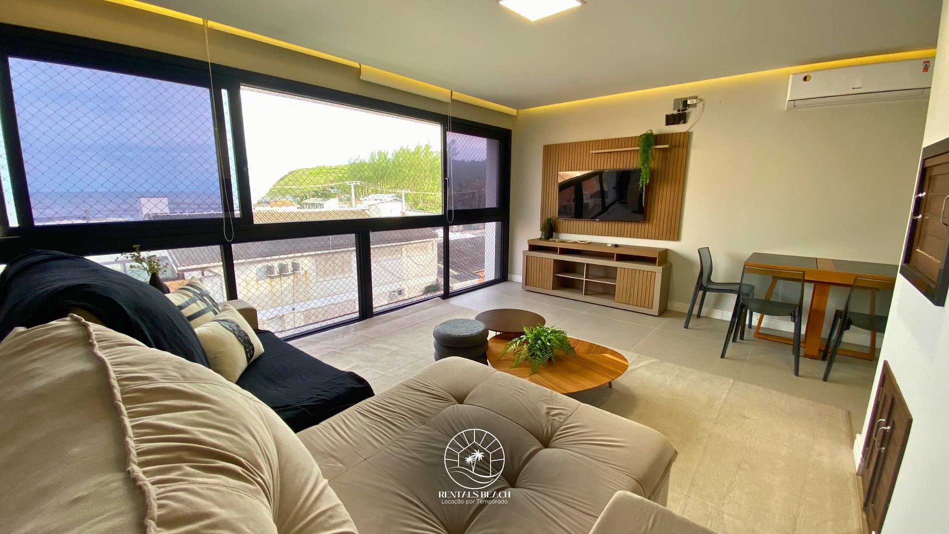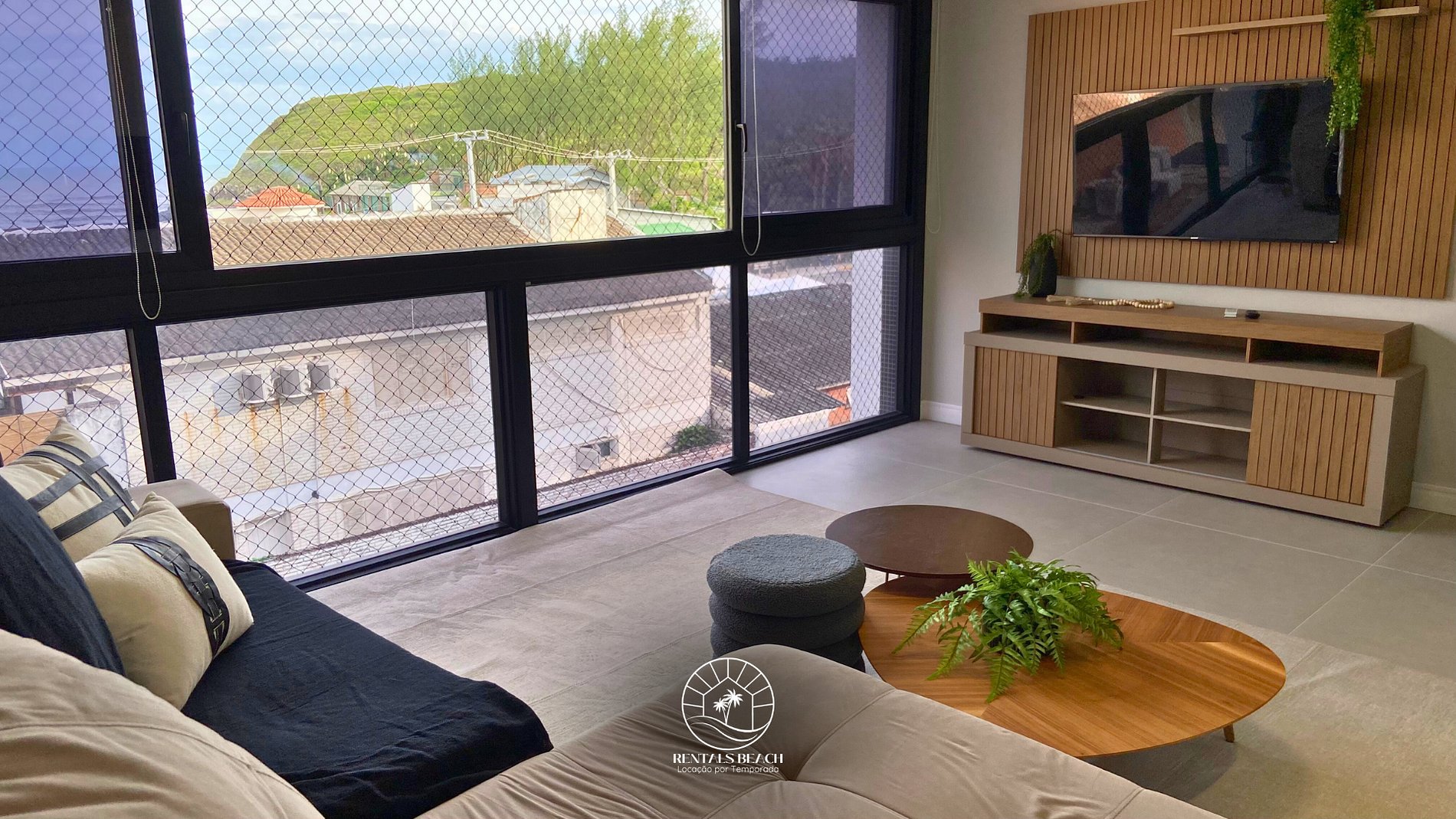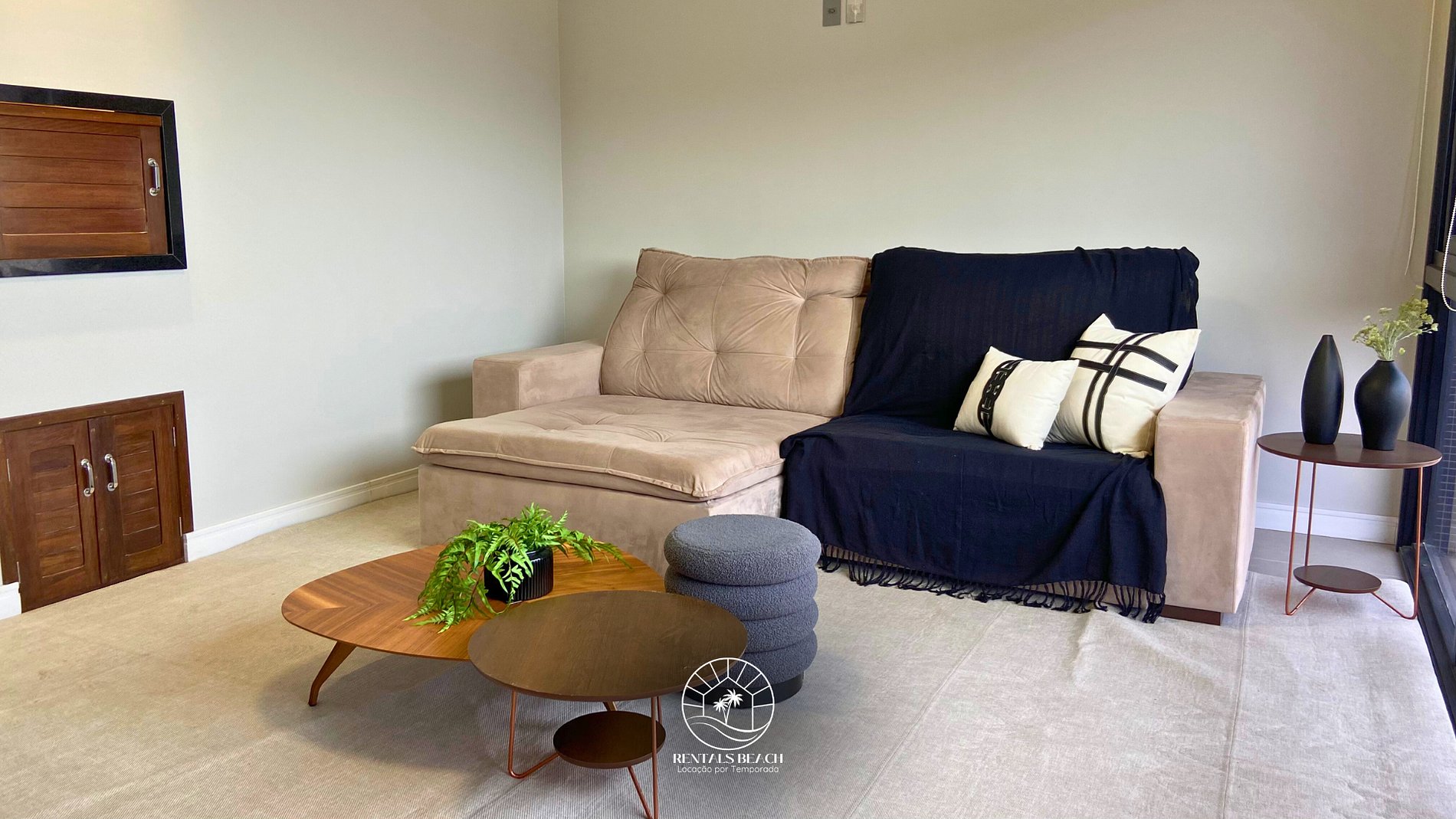 Sala de estar: Smart TV, wifi, sofá e vista para o mar.