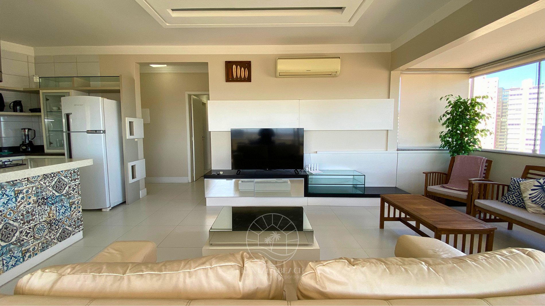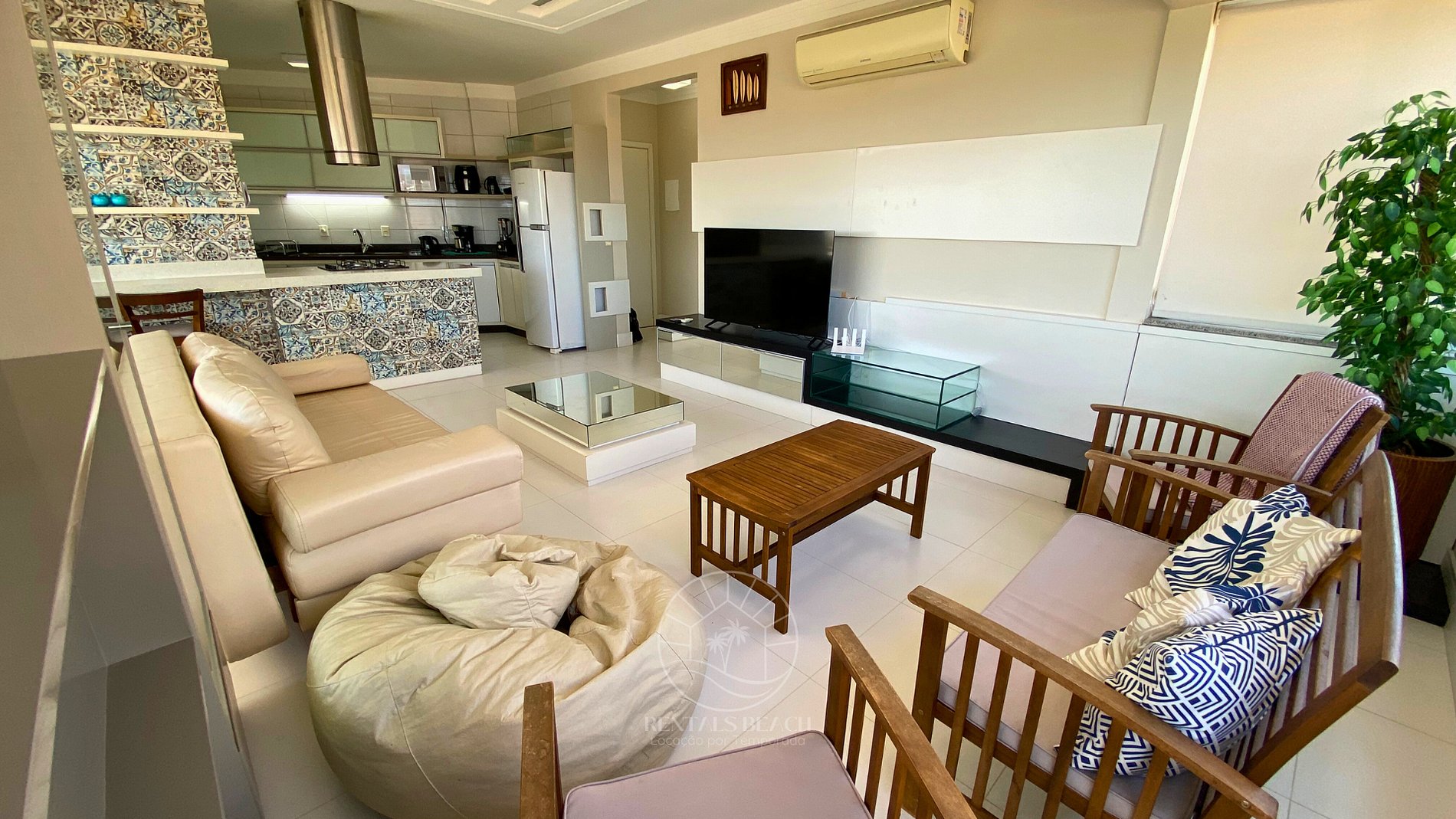 Sala: sofá cama, poltronas, Smart TV, Wifi, ar-condicionado, mesa de jantar com cadeiras, cortina translucida.